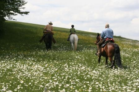 Schwing die Hufe! Wanderreiten 22 Reiterhöfe bieten sich in Unterfranken als Ausgangspunkte für Wanderungen mit Pferd an. Nicht immer muss man sein eigenes Tier mitbringen. Wir waren ein Wochenende auf der Fränkischen Platte unterwegs.